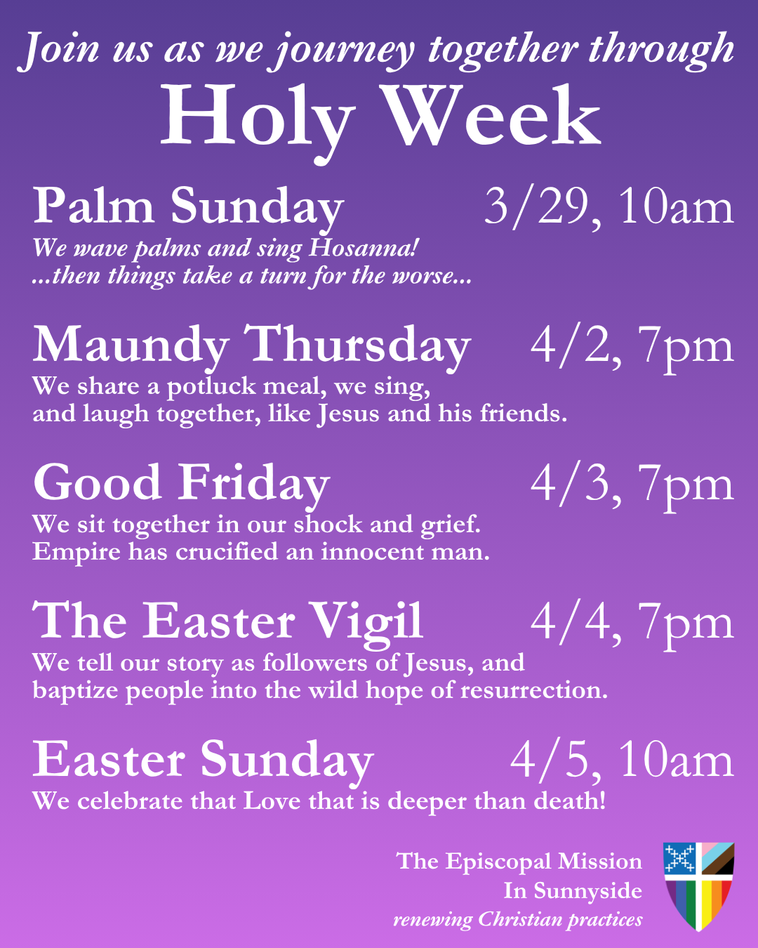 Join us as we observe these sacred days as a community of practice, open to mystery.